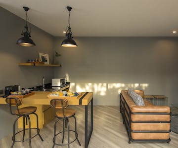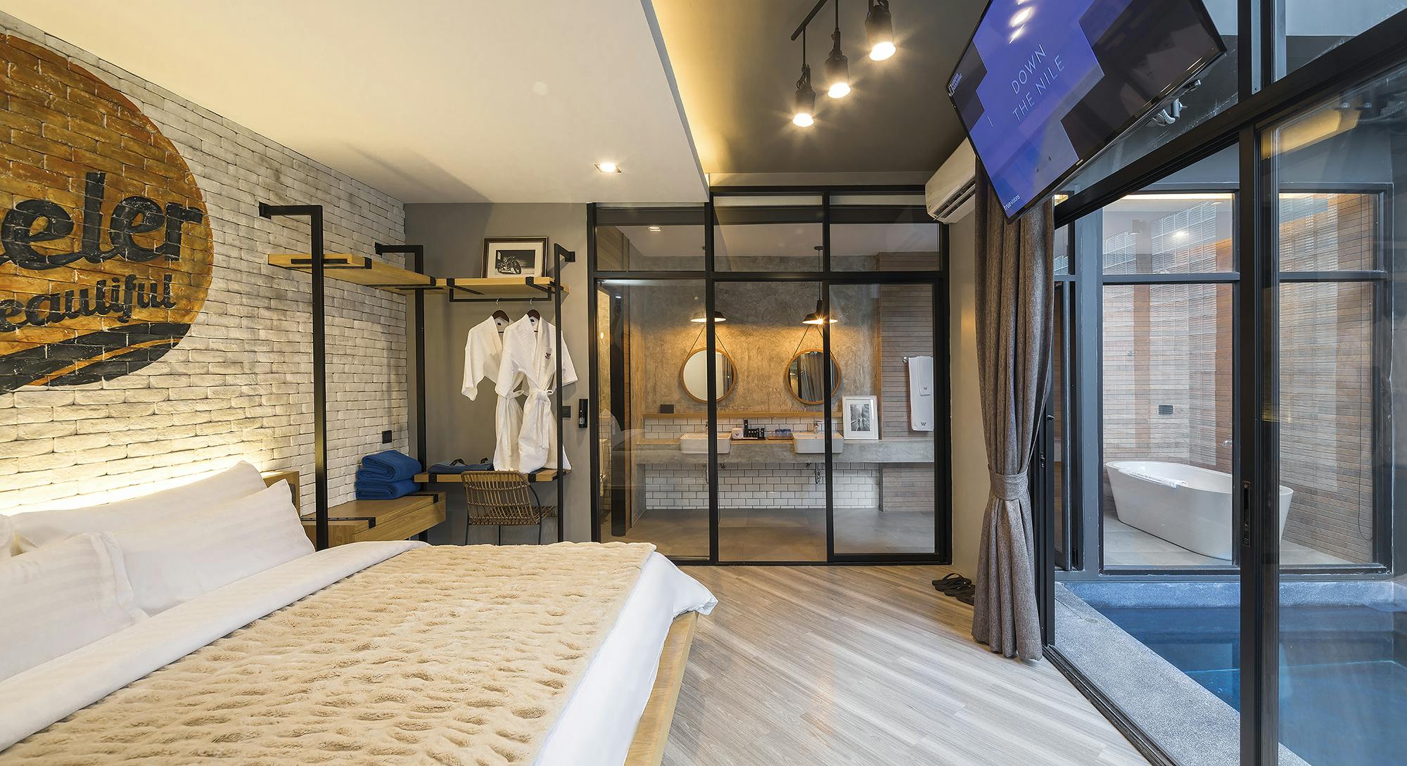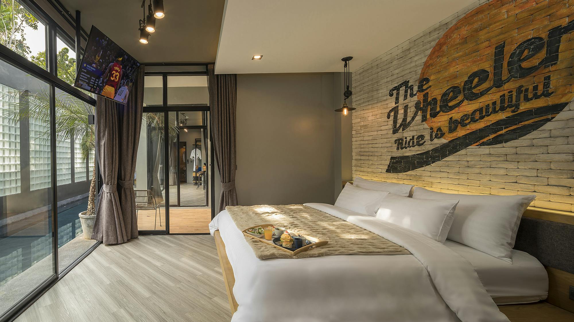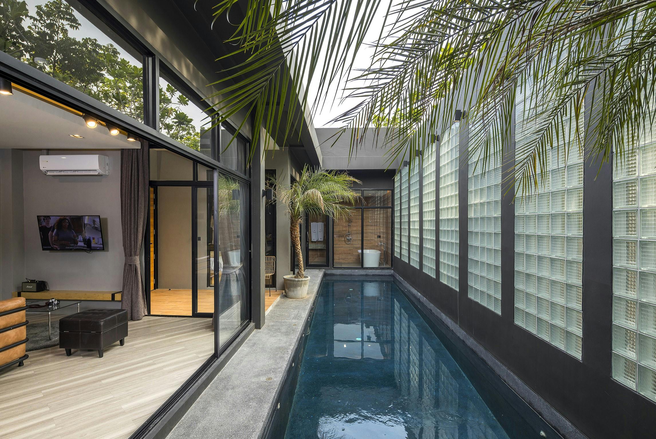 วิลล่าขนาด 70 ตร.ม. แบบ 2 ห้องนอน 2 ห้องน้ำ 1 ห้องนั่งเล่น มีสระว่ายน้ำกลางบ้านและพื้นที่นั่งเล่นเชื่อมต่อทุกห้อง เหมาะสำหรับครอบครัวหรือกลุ่มเพื่อนที่ต้องการพักผ่อนร่วมกันอย่างเป็นส่วนตัว ตกแต่งสไตล์โมเดิร์นเรียบหรู พร้อมสิ่งอำนวยความสะดวกครบ เช่น ครัวขนาดเล็ก โต๊ะรับประทานอาหาร และพื้นที่พักผ่อนกลางแจ้ง